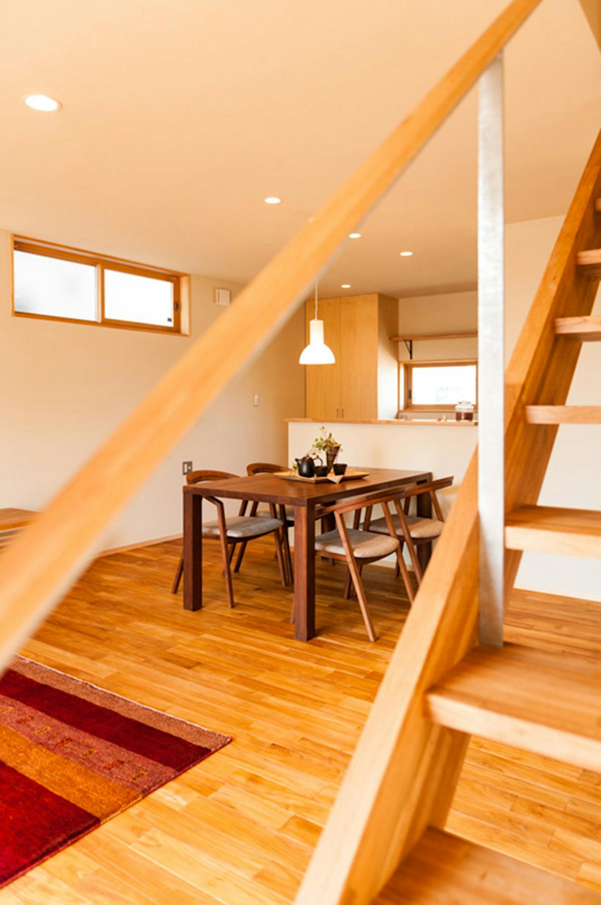 階段も側桁と段板だけで構成されており、開放的な空間となっています。